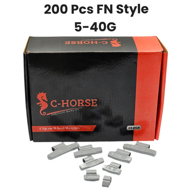 C-HORSE 200-Piece Assortment Clip-On Wheel Weight Kit — FN Style, Gray Coated (5g, 10g, 15g, 20g, 25g, 30g, 35g, 40g)The C-HORSE 200-piece clip-on ...