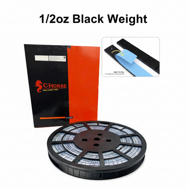 C-HORSE Stick-On Self-Adhesive Wheel Weights — Black Coated, 0.50 oz Increments, 3M Adhesive TapeThe C-HORSE black coated stick-on wheel weights pr...